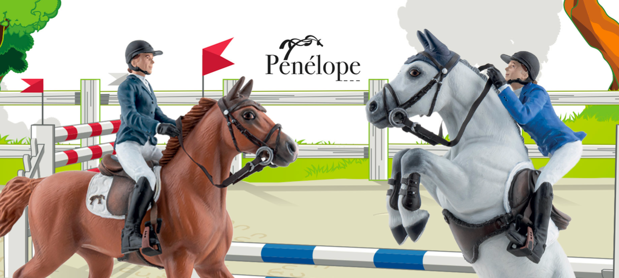 Penelope & Mylord, Penelope & Flora, Penelope & Blacky, Eden & Qimbaya. These four new items from the Penelope license, sold in a box set, are meticulously hand-painted, and ensure remarkable realism down to the smallest details, whether it be the competition outfits or the anatomy and attitude of the horse. The accuracy of the postures offers a faithful reproduction of the main characteristics of the animal. The figurines from the Penelope license will be the ideal support for playing and giving free rein to your imagination.